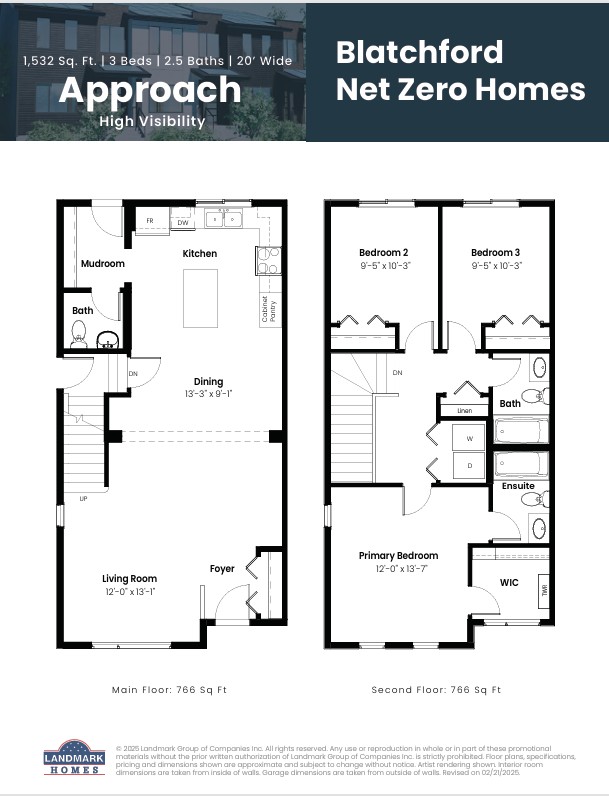 1,532 sq ft, 2-storey, open concept layout